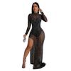 Experience a blend of elegance and modern style with this women's long dress, crafted from delicate mesh material. The dress features a solid color design, accented with hot drill embellishments for an added touch of glamour. A sophisticated slit offers a subtle yet alluring detail, perfect for any fashionable event. Ideal for both European and American fashion tastes, this dress is a chic addition to any wardrobe.