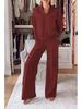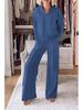 Elevate your wardrobe with this versatile V-neck long sleeve top and wide leg pants set, designed for a sporty and stylish look. Crafted from high-quality polyester fibers, this solid-colored set offers both comfort and durability. Ideal for any casual outing or relaxed gathering, its modern silhouette and breathable fabric ensure you stay comfortable while looking effortlessly chic throughout the fall season.