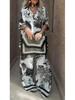 Experience ultimate comfort and style with this Euro-American V-neck short-sleeve top and wide-leg pants set for women. Crafted from high-quality polyester, this ensemble offers a casual yet chic look perfect for any occasion. The set features a unique print decoration, adding a touch of flair to its overall design. Embrace a relaxed and fashionable outfit that seamlessly blends modern trends with timeless casual elegance.