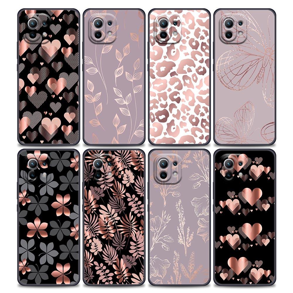 Pink Glitter Hearts Love Grass Leaf For Xiaomi 15 Ultra 11T 12T 13T 14T Pro Phone Case Mi POCO X7 M7 F7 Pro F5 F6 X3 X5 X6 Cover