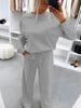 Step into the season with this stylish and cozy two-piece set, perfect for the autumn and winter months. This fashion-forward ensemble includes a drop shoulder long sleeve top paired with ruched long pants, both crafted from high-quality polyester material. Featuring a solid pattern, this set effortlessly combines European and American style elements to deliver a chic, casual look that’s ideal for any occasion. Whether you're heading out for a relaxed day or dressing up for a casual evening, this set offers both comfort and elegance.
