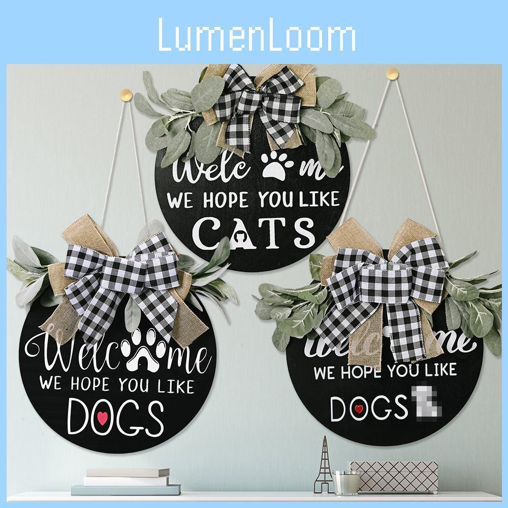 Rustic American Style Wooden Door Sign With Checkered Bow For Home Decor Dogs And Cats