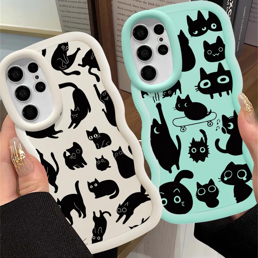 Case for Samsung Galaxy S21 S25 S24 A26 S22 Ultra S23 Plus A25 S20 FE Soft Phone Cover A35 A36 A34 A24 A55 A54 Black Cat Cartoon