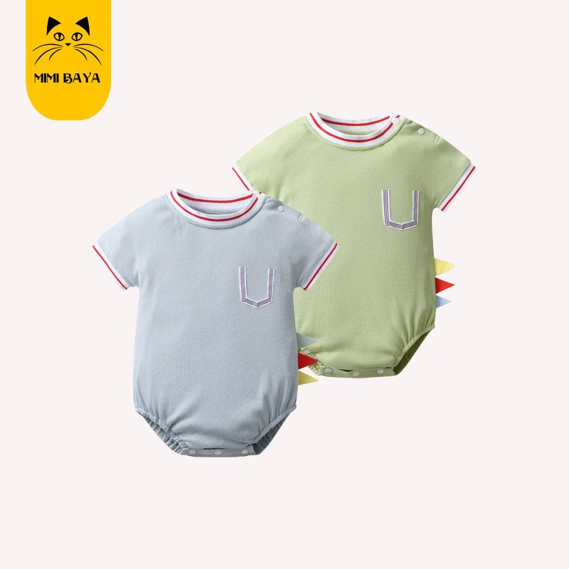 Baby Romper Summer Outfit New Style Unisex Short-Sleeve Korean Style Triangle Romper Dinosaur One-Piece Crawling Suit