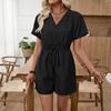 Elevate your casual wardrobe with this stylish V-neck jumpsuit, crafted from high-quality polyester for a faux denim look. This blue jumpsuit features a waist-cinching design that effortlessly flatters your silhouette, combining comfort and chic style for any occasion. Perfect for a relaxed day out or a casual evening, it's a versatile addition to any fashion-forward closet.