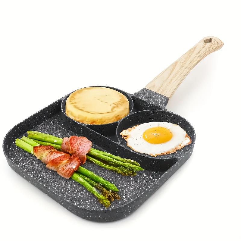 Breakfast Frying Pan Omelet Pan Beef Steak Saucepan Non-Stick Aluminum 2-Hole Omelet Pan with Wooden Handle Pancake Pans