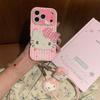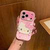 Fashion Pink Stripe Cute Hellokitty Phone Case For iPhone 17 Pro 16 15 14 Pro Max Cover with Hand Strap Shockproof Protective Ca