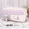 Simple Large Capacity Student Pencil Case Multi-Layer Flip Style Cute Pencil Pouch Ins Canvas Gel Pen Organizer Kids