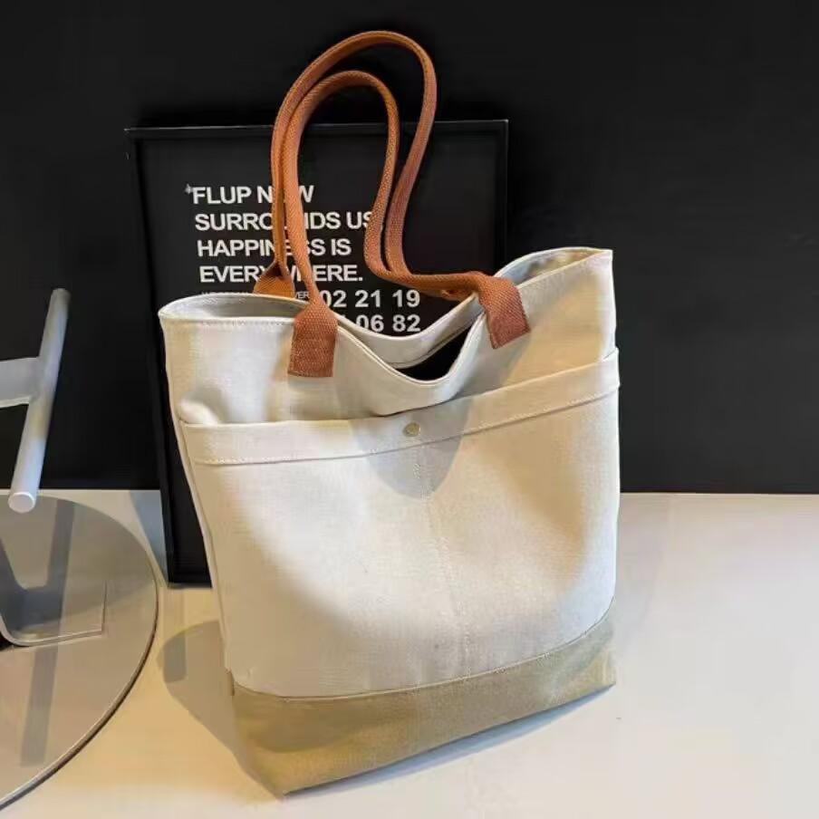 Casual Tote Bag, Simple and Fashionable Commuter Canvas Bag, Korean College Students Class Tote Bag