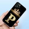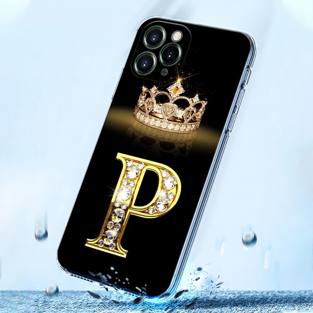 Diamond Crown First Initials Letter N T Z Shell Case for iPhone 15 16 11 12 13 14 Pro Max Mini 16 Plus Transparent Cover Fundas