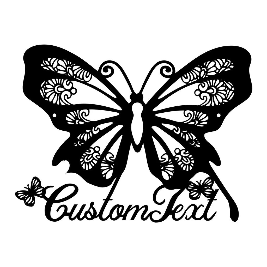 Butterfly Metal Wall Sign, Personalized Name Plate, Floral Garden Decor, Mother's Day Gift, Custom Wall Art