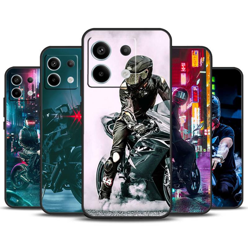 Neon Motorcycle Biker Phone Case For Redmi Note 12 13 Pro Plus 9 10 11 Pro 9S 10S 11S 12S Redmi 10C 12C 13C Cover