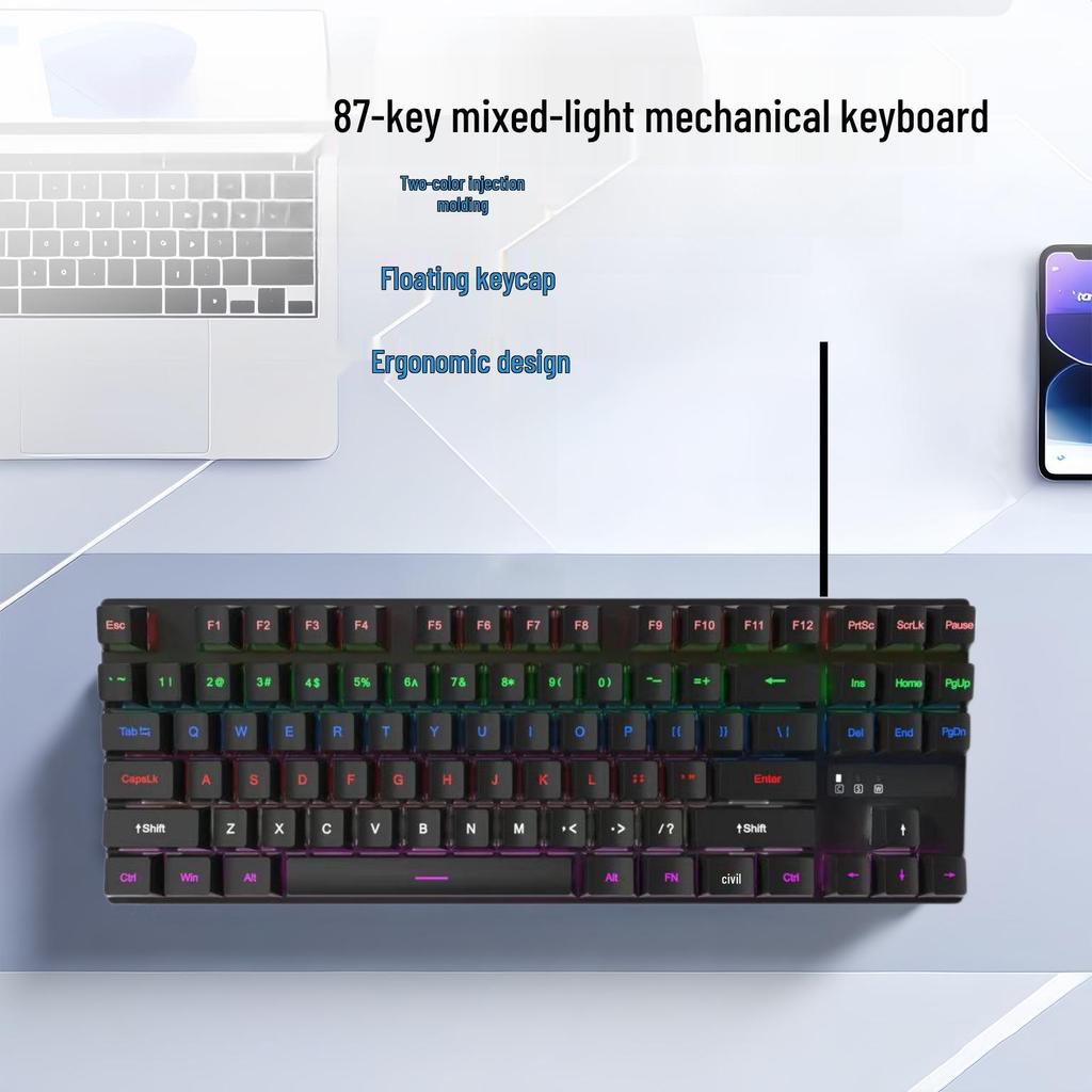 H87 Mechanical Wired Keyboard with Blue Switches for Gaming and Office