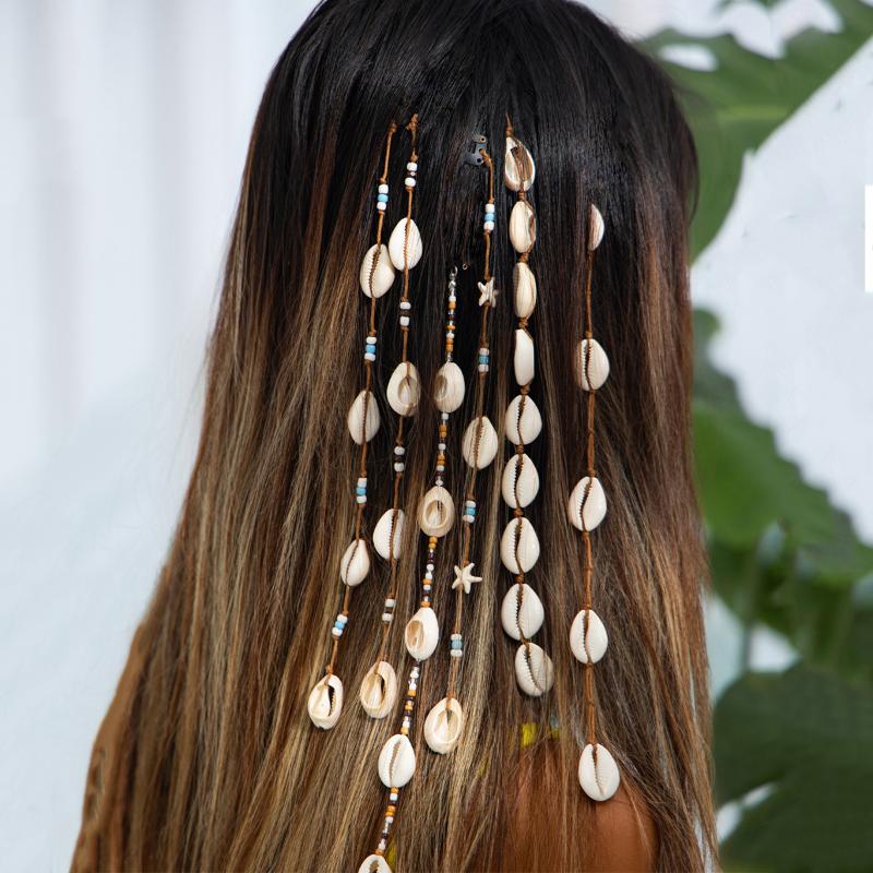Festival Hair Extension Shell Bead Strands Waterproof Coating Boho Mermaid Core Dreadlock Jewelry For Braids