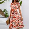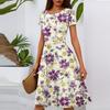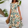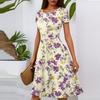 Women's Casual Fashion Round Neck Pleated Short Sleeve Floral Print A-Line Midi Dress