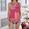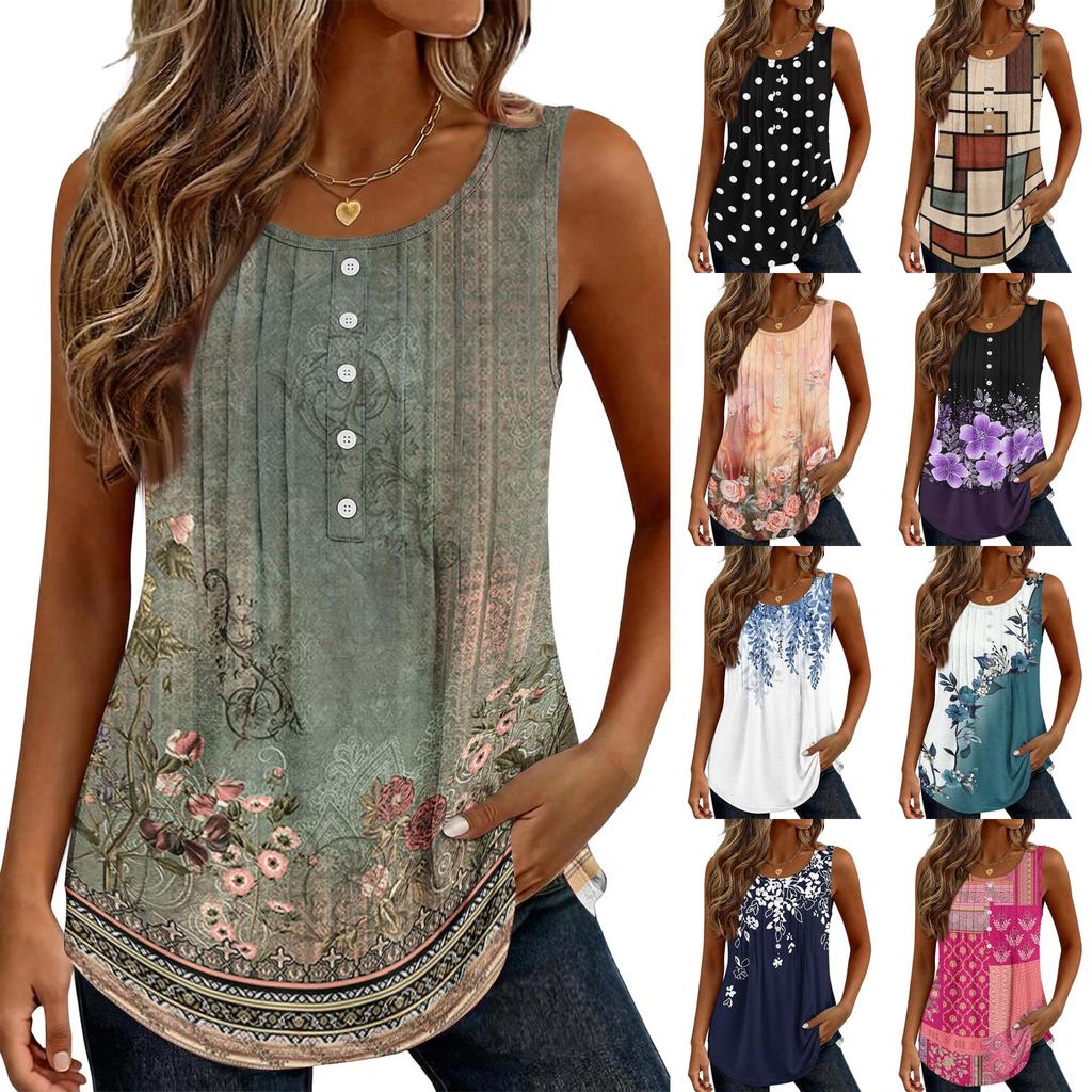 Women's Fashion Casual Retro Floral V-neck Decorated Buttoned Ruffled Sleeveless Vest T-shirt Top