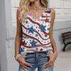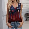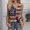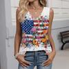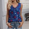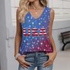 Women's Fashion Casual American Independence Day Flag and Stars Print V-neck Ruffled Sleeveless Vest T-shirt Top