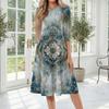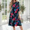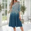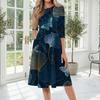Women's Casual Fashion Round Neck Three Quarter Sleeve Printed Midi Dress