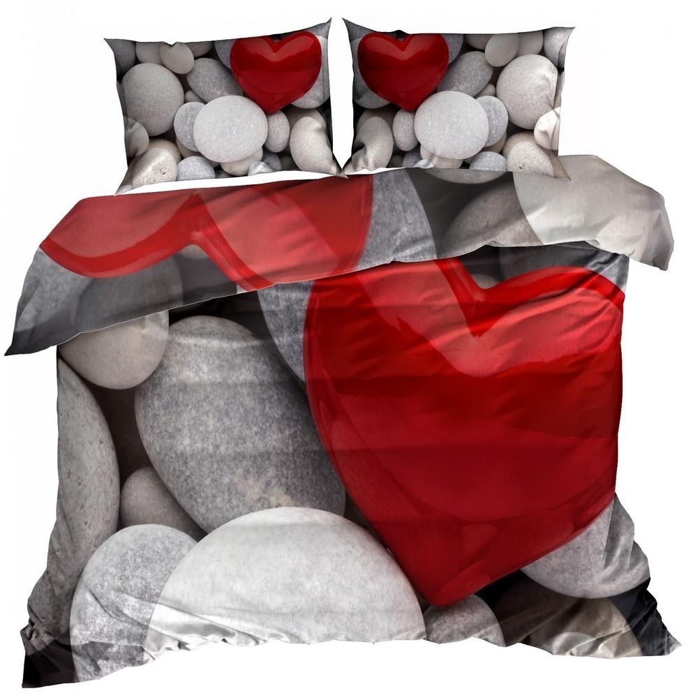 3D Cotton Satin Bedding 140x200cm HEART ON STONES