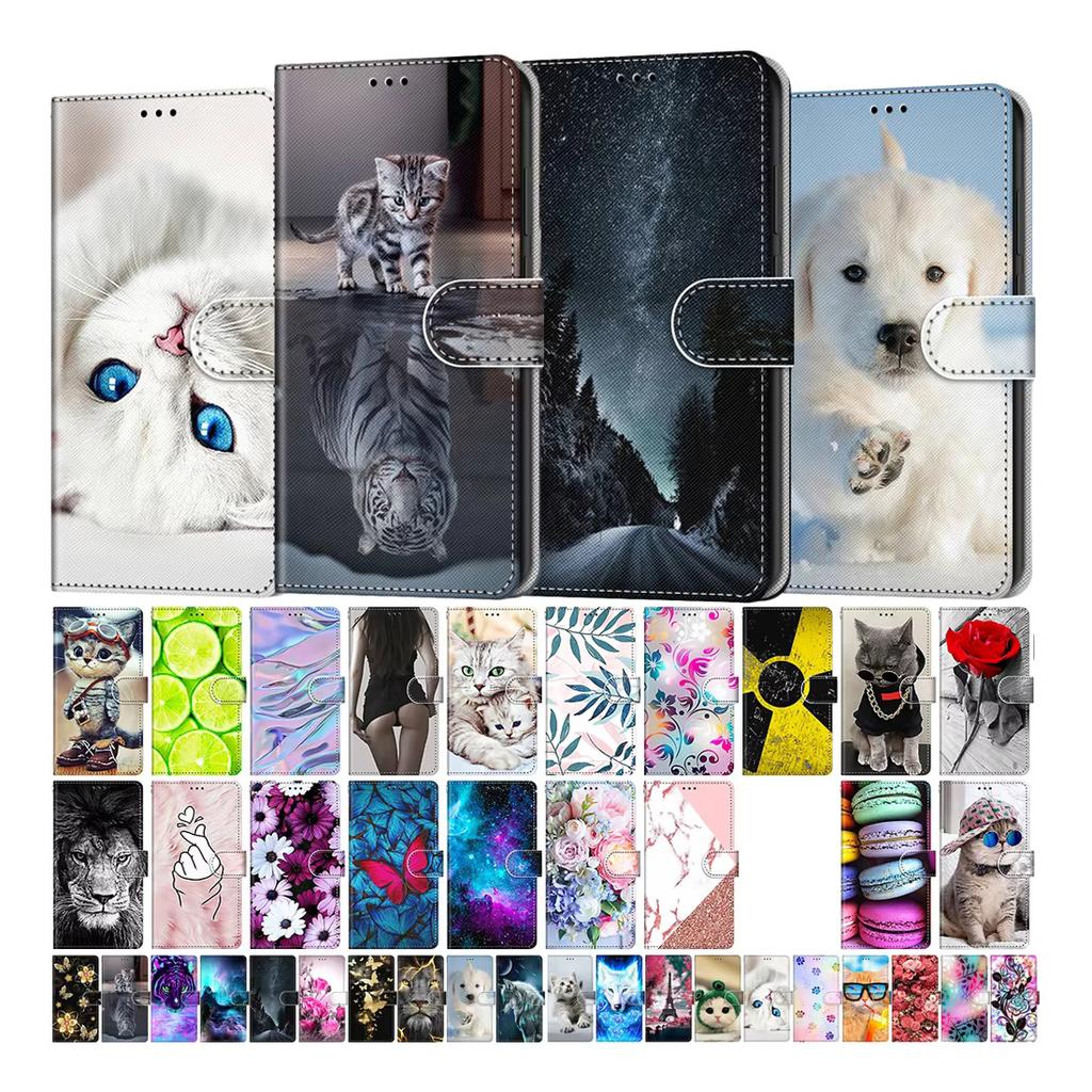 Painted Leather Flip Phone Case For Xiaomi Poco C40 M5S Redmi 9 9A 9C 9T Lion Cat Butterfly Wallet Card Holder Stand Book Cover
