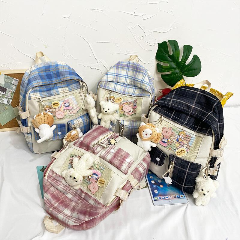Schoolbag Female Harajuku High School Elementary School Elementary School Student Plaid Backpack Cute Large Capacity Travel Backpack