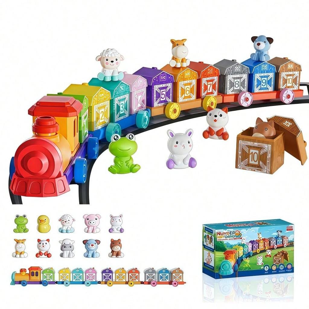 Farm Theme Number Train Toy, Montessori Early Education Matching Classification, Fine Motor Skills & Color Recognition