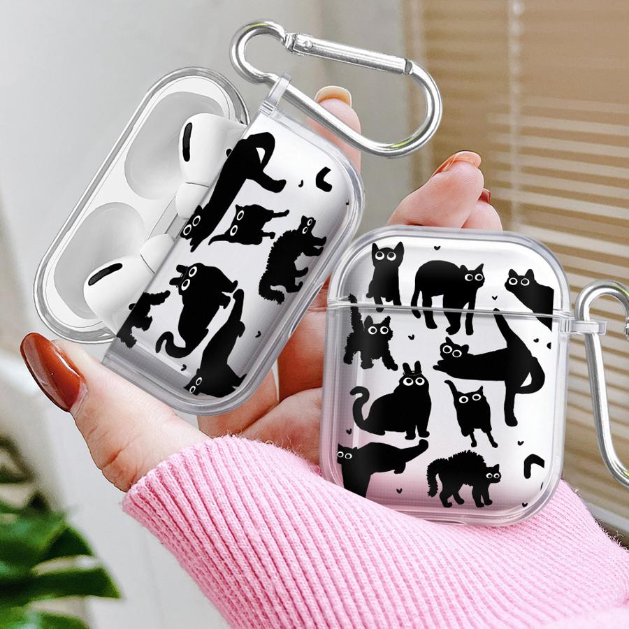 Clear Earphone Cases Cover Case For Airpods Pro3 1 Pro Pro2 4 2 3 Cartoon Black Cat