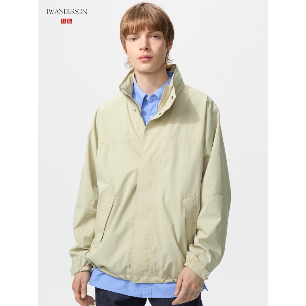 The UNIQLO Japan Windproof Stand Blouson features a distinctive sleeve design connected from the yoke. With a relaxed silhouette, it allows for various wearing styles through the spindle code at the hem.