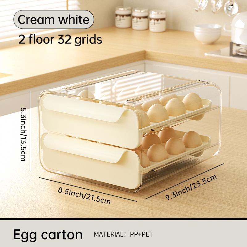 UFORU Egg Storage Box Kitchen Refrigerator Drawer Type Egg Carton Double Layer Egg Holder Crisper Box