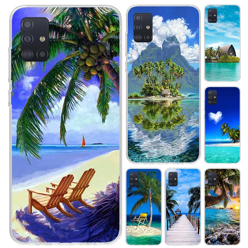 Summer Beach Sunset Sea Palm Tree Phone Case for Samsung Galaxy A52 A32 A22 A12 A02S A50S A30S A10S Note 20 Ultra 10 Plus S10 A3