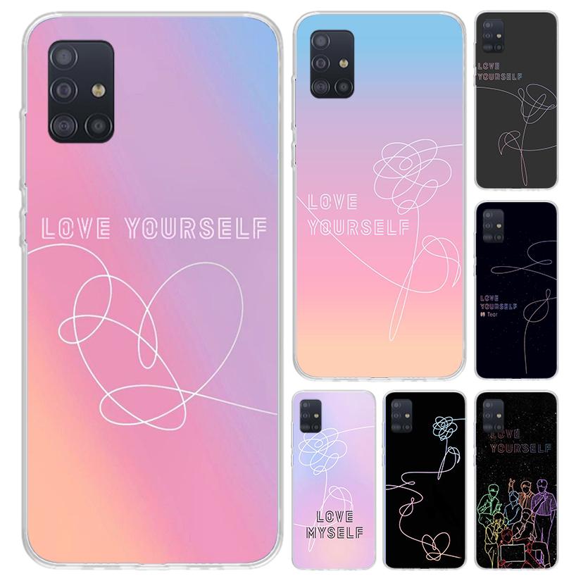 Love Yourself Flower Heart Line Kpop Phone Case for Samsung Galaxy A52 A32 A22 A12 A02S A50S A30S A10S Note 20 Ultra 10 Plus S10