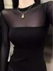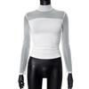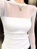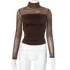 Womens Long Sleeve Basic T Shirt With Sheer Panel And High Neck For Casual Wear