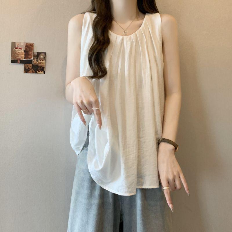 Plus Size Sleeveless Round Neck Vest - Summer 2026 Loose Slimming Top for Women