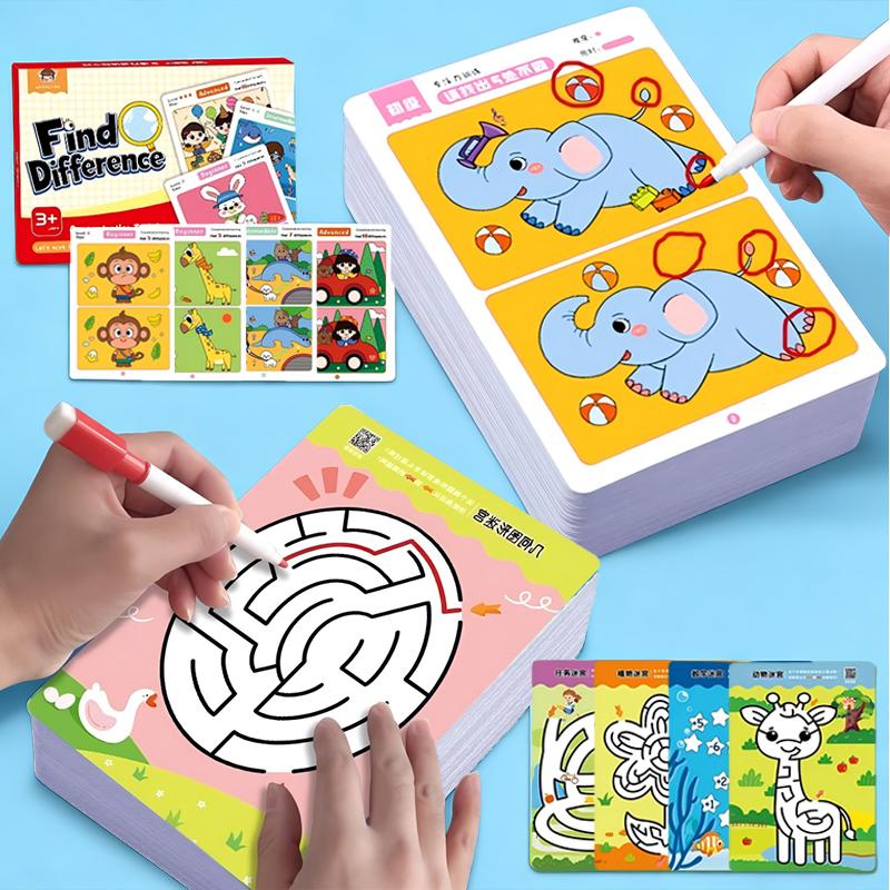 64/80Qs Kids Montessori Educational Game Cards Error-finding & Maze Games Baby Early Education Concentration Training Reusable