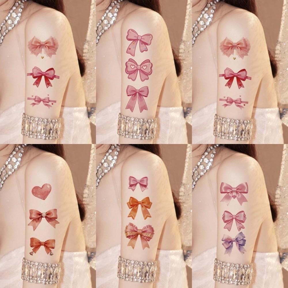 Pink Bowknot Ribbon Face Temporary Tattoos Waterproof Makeup Stickers Party