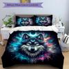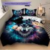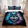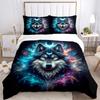 3pcs Moons and Vibrant Cosmic Flames Wolf Quilt Cover Set - Soft and Cozy Bedroom, Guest Room and Dorm Decorative Bedding