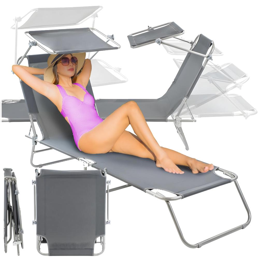 GARDEN BEACH FOLDABLE DECK CHAIR WITH CANOPY GRAY LOUNGE CAMPING BED Ready for exceptional relaxation? Discover PINTO - the irreplaceable deckchair with canopy that will guarantee you blissful rest in the fresh air! PINTO is an ultra-light sunbed and a comfortable bed in one , perfect for the garden or the beach, guaranteeing comfort anywhere. Thanks to the adjustable shade canopy you will protect yourself from the scorching sun while taking care of your health! PINTO DECK CHAIR IN BRIEF: Comfortable deckchair with canopy - two useful functions in one! SUNBLOCK technology for maximum sun protection. Adjustable backrest angle to adapt to your needs. Resistance to changing weather conditions. Strength up to 150 kg - ideal even for larger people. Easy folding and carrying - take it with you anywhere! Ergonomic design for the safety of your spine. ARE YOU GETTING READY FOR SUMMER RELAXATION Regardless of whether you have a terrace, a garden or you are planning a beach , our PINTOO deckchair is the key to complete relaxation and comfort wherever you are! Create a summer oasis on your terrace, the perfect place for barbecue gatherings or a comfortable deckchair for sunbathing by the water - the PINTOO deckchair will provide you with perfect support. Thanks to its versatility and comfort, you can enjoy a moment of relaxation anywhere , creating an atmosphere of peace and relaxation that will allow you to fully savour summer moments. FREEDOM TO TRAVEL Mobility is a key feature of our PINTOO sunbed, which easily accompanies you on every trip. Thanks to 's lightness and quick folding , taking it with you takes only a moment. Say goodbye to heavy and bulky beach loungers that often fail and break. With our practical lounger, you can enjoy the freedom of traveling without any hassle. Regardless of the destination - the beach, a picnic in the park, or camping in the mountains - our PINTOO lounger will provide you with a luxurious rest anywhere you can dream of. SPECIFICATION dimensions: deckchair height: 25 cm deckchair width: 55 cm deckchair length: 186 cm canopy size: 36x56 cm color: gray maximum load up to 150 kg materials: 600D fabric Oxford, steel folding function non-slip elements coating protective TAKE CARE OF YOUR FACIAL SKIN The face is particularly sensitive to sunlight for several reasons. Facial skin is usually more delicate and more susceptible to damage than other areas of the body. Sun exposure can lead to irritation, burns, and accelerate the aging process of the skin . Therefore, it is important to protect yourself from the sun to avoid unpleasant consequences and premature wrinkle formation. Avoiding sun exposure during the hours when UV radiation is at its highest also helps protect your skin from the negative effects of the sun's rays. Take care of your skin to maintain its youthful and healthy appearance! READY FOR ANY WEATHER! Our sunlounger will accompany you on every adventure, regardless of weather conditions . Thanks to a special protective layer, it is resistant to rain, wind and sun , guaranteeing reliability for many seasons. STABILITY ON ANY TERRAIN! Even on uneven ground, our sunlounger will provide you with stability and comfort . Thanks to innovative safety features, you can fully enjoy relaxing outdoors, regardless of the terrain or weather conditions. Discover true comfort in all conditions! DURABLE AND HYGIENIC Introduce furniture into your life that not only withstands the rigors of everyday life, but also guarantees easy cleaning . Our loungers are made of durable materials that withstand even the most demanding weather conditions. Discover the freedom of relaxation, knowing that easy and quick cleaning awaits you after every use! Invest in durable and hygienic furniture now to experience true comfort and peace during every relaxing moment! REST WHEREVER YOU DREAM Discover complete relaxation on your terrace or balcony , where every breath of fresh air and closeness to nature create ideal conditions for blissful relaxation. Create your own kingdom of peace in your garden or plot , where the harmony of the surrounding nature will allow you to relax and enjoy life again. On the shore of a river, lake, or sea you will experience the charm of nature, which will add magic to every moment of relaxation, enveloping you in peace and the power of regeneration. While fishing, you will find a comfortable place to observe fish and enjoy the silence by the water , ensuring moments of blissful peace. On the sandy beach , where the sound of the waves creates a unique symphony, you will find inner peace and balance, allowing yourself to fully regenerate and relax. *⃣ Next to the pool, surrounded by paradise, you will find the perfect place to relax after a swim or while reading your favorite book, ensuring moments of blissful relaxation and comfort. SANDOS - YOUR DREAM VACATION SANDOS is the best summer memory full of sun and the sound of waves . We want to give you the perfect holiday, so with us you will create your beloved oasis of peace. Relaxing Getaway isn't just about luxury hotels. You can experience true relaxation wherever you desire. Discover the highest quality umbrellas, loungers, windbreaks, and stand-up paddleboards to make every vacation a dream come true! Active relaxation with water sports or peaceful sunbathing on the beach - Sandos has everything you need