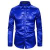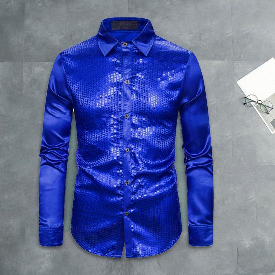 Men Shirt Club Dance Shirt Shiny Sequin Lapel Single-breasted Slim Fit Colorful Stripe Glossy Long Sleeve Performance Men Top