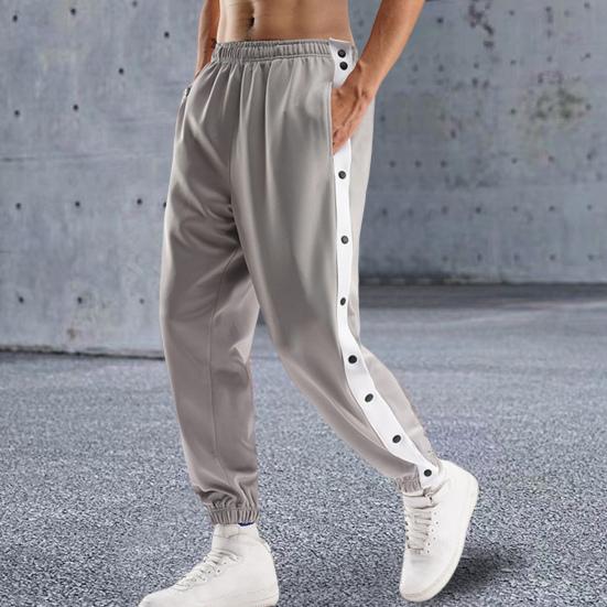 Made of high-quality polyester material, men jogging pants are quick drying, soft and comfortable. Side buttons closure design is convenient for you to take off while playing basketball.