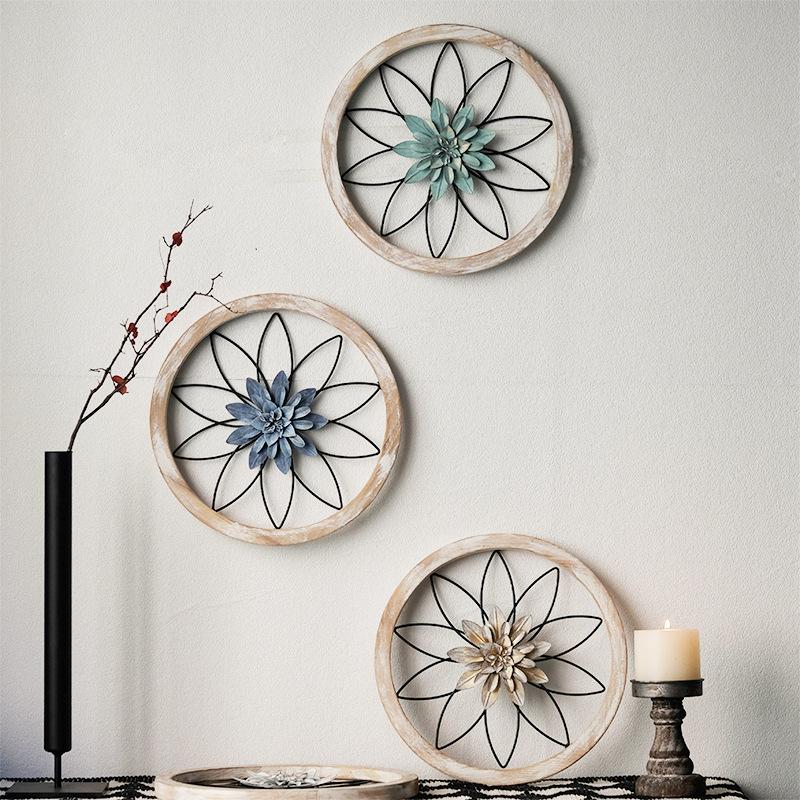 American Countryside Living Room Entrance Retro Wall Decoration Wall Hanging Circular Wooden Frame