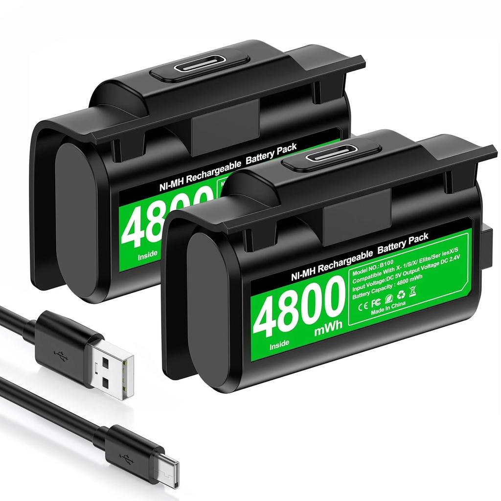 2Pcs 4800Mwh Battery Xbox One Controller Batteries Pack Play Andcharge Kit Usb-C Charging Cable/4 Covers for Xbox One/seriesx|S