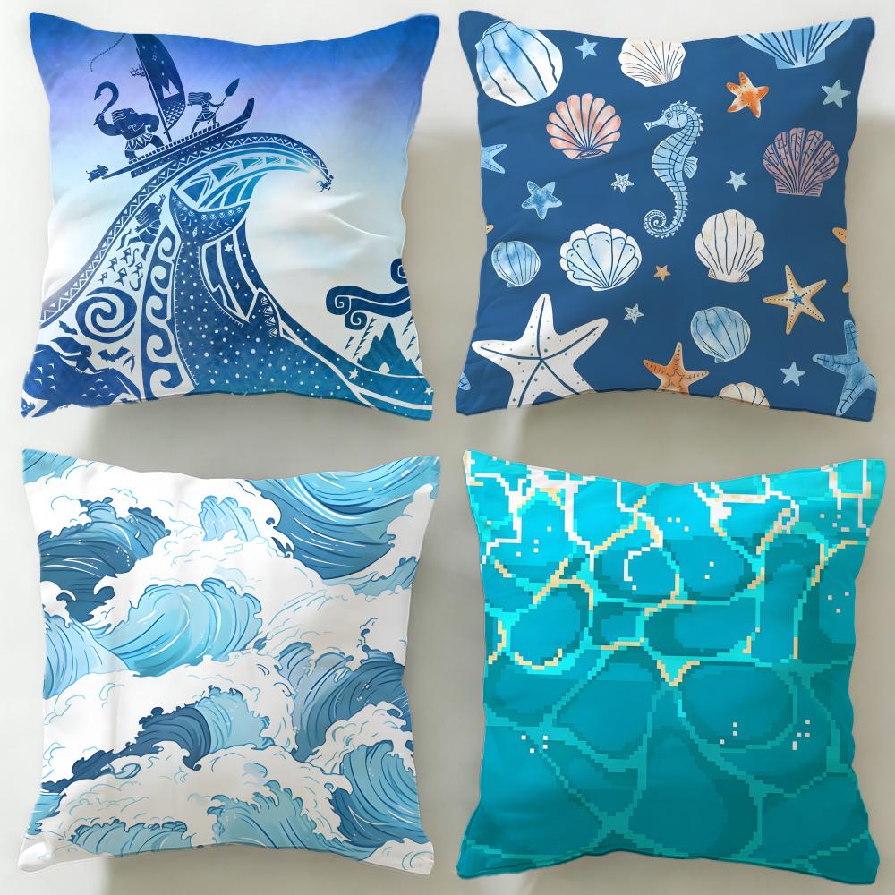 Light Blue Ocean Ripple Cushion Cover Soft EasyWash Pillow Case Versatile for Couch Bed Travel and Office