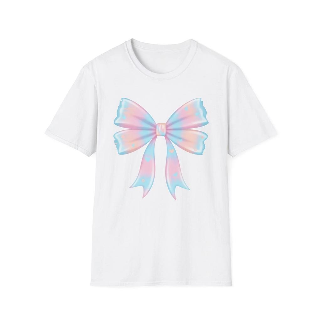 Pastel Ribbon Bow T-Shirt | Pink Blue Gradient Bow Illustration