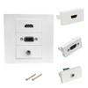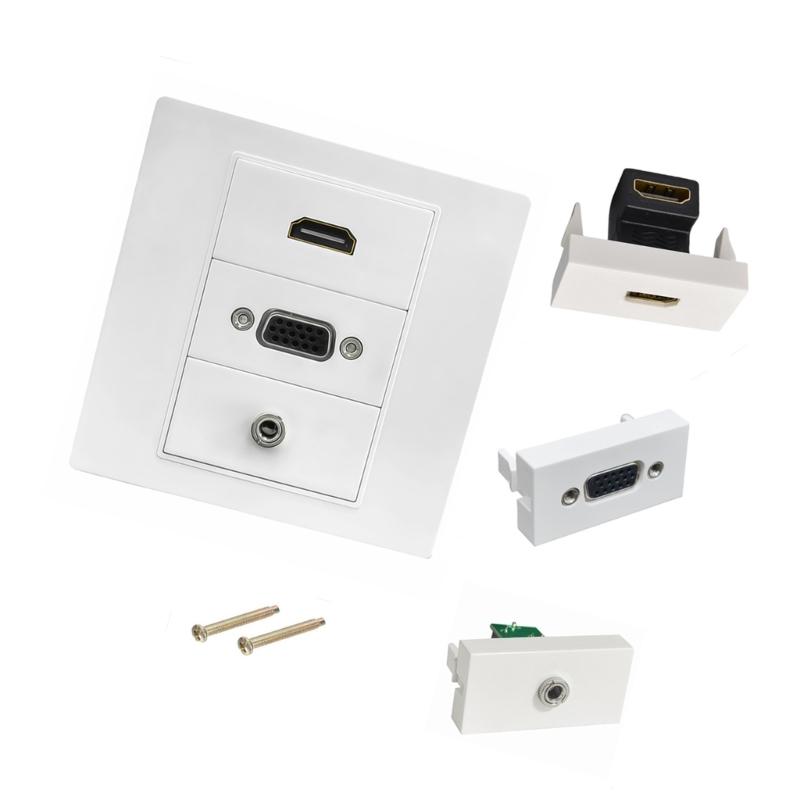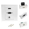 This plug and play multimedia wall plate integrates HDTV, VGA, 3.5mm sound port for versatile connectivity without soldering, ensuring seamless device integration.