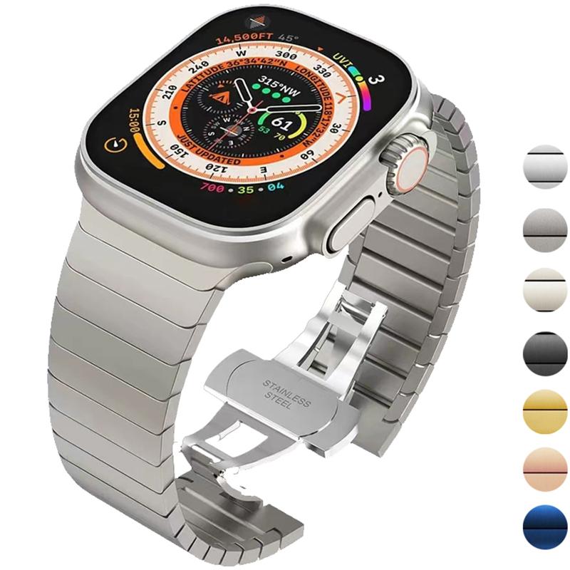 Luxury Titanium Color Band for Apple Watch Ultra 49mm 8 7 41 45mm Stainless Steel Strap for IWatch 6 5 4 3 42 44mm 40mm Bracelet