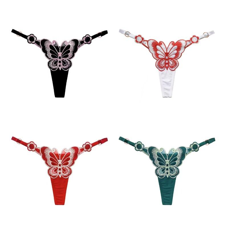 European Exquisite Butterfly Embroidered Thong Sweet Flower Perspective Lingerie Women Sexy Adjustable Briefs