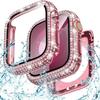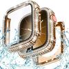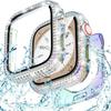 Bling Glass+Cover Case Diamond PC Bumper+Screen Protector For Apple Watch 45mm 44mm 40 41mm Iwatch Series 10 46mm 42mm 9 8 7 5 6