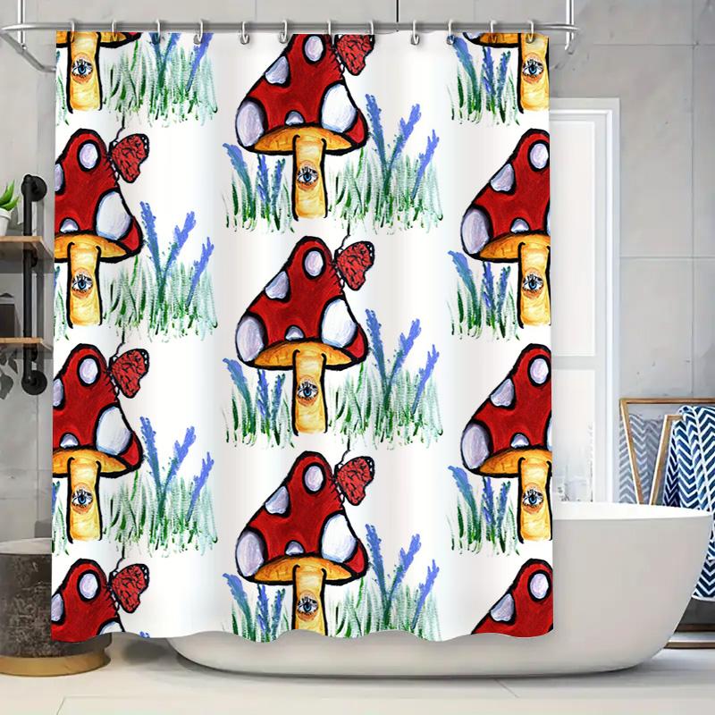 Hand-painted Mushroom Shower Curtain Set Waterproof Bathroom Decoration Customizable Size Available Decorative Kitchen Towel, Te