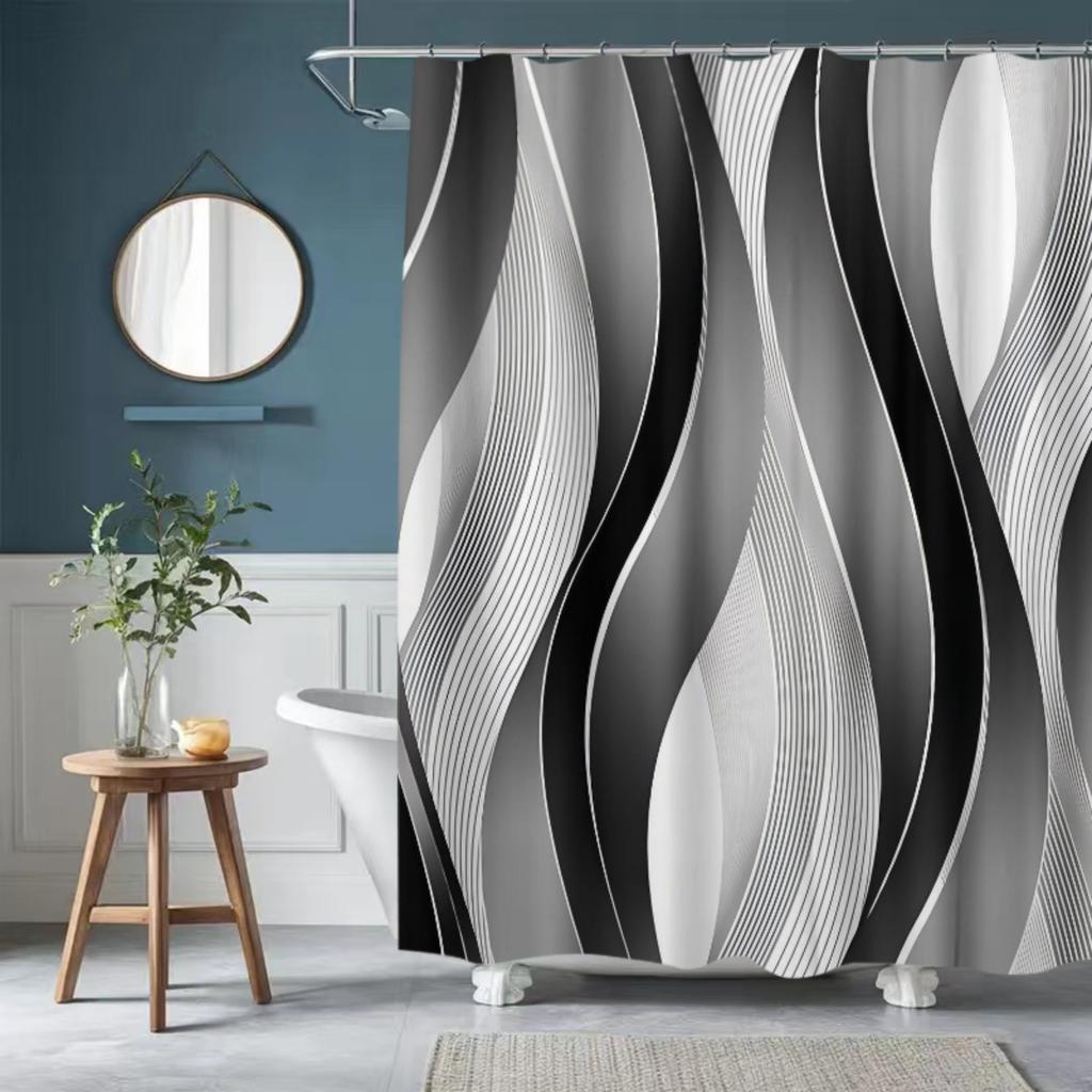1pc Black And White Wavy Line Pattern Shower Curtain Made of Polyester for Bathroom Decoration And Accessories, Printed Curtai