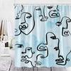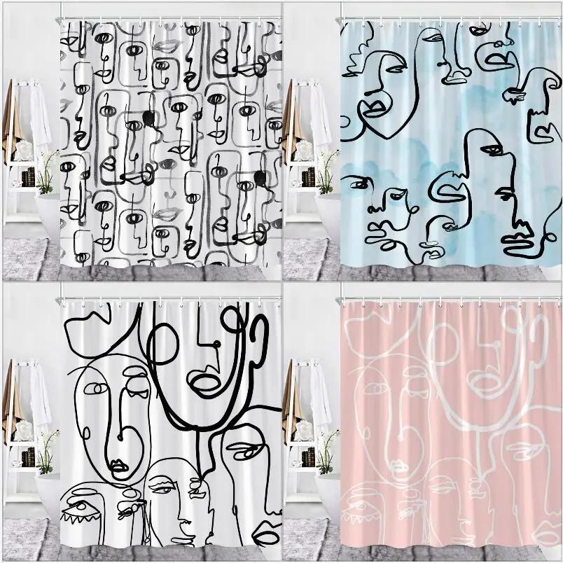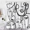 Abstract Face Shower Curtain Hooks Geometric Lines Face Simple Art Fabric Bathroom Decor Fabric Curtains Polyester Washable